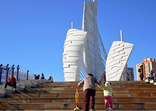 11月2日,前往北京市朝阳区萧太后河广场晒太阳的老人和孩子。陈琳辉摄
