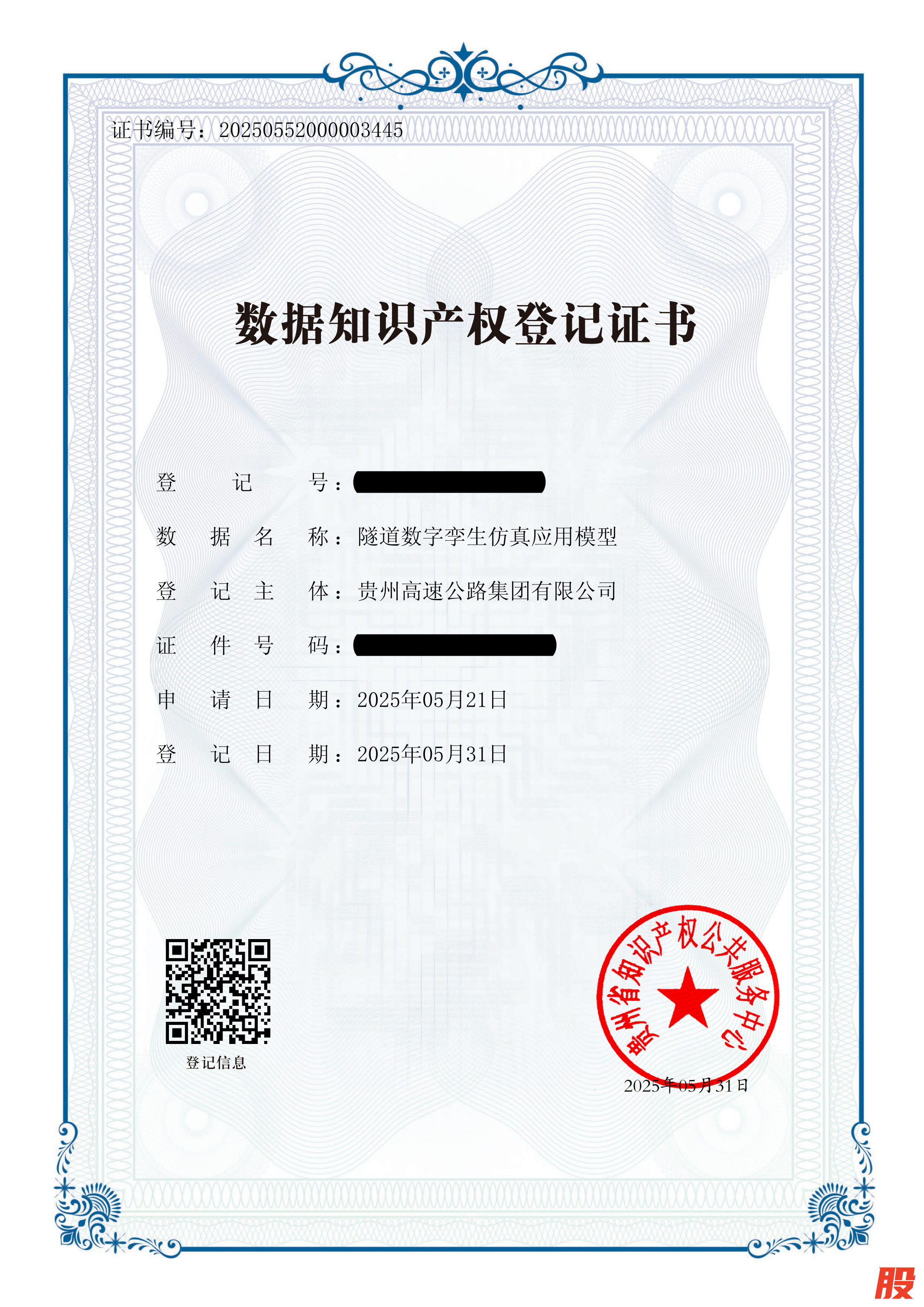 8月22日,在贵州省知识产权局、贵州省交通运输厅共同推动下,贵州高速公路集团有限公司以其拥有的“桥梁健康监测数据集”“隧道数字孪生仿真应用模型”等4件核心数据知识产权,通过质押获得中国建设银行股份有限公司贵阳分行数据知识产权贷款1亿元,创下贵州省数据知识产权质押贷款金额最高纪录,这也是全国交通领域数据知识产权质押贷款金额最高纪录,为全国交通行业数据要素市场化配置提供新范式。